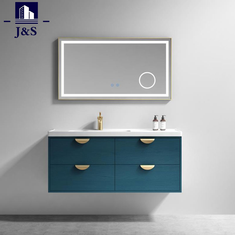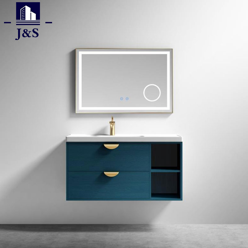 Vi leverer et rimelig lite servantskap for bad. Det nye designet er en ren overgangsstil som bringer balanse og harmoni til ethvert rom. Marineblå farge, gyllent håndtak, smart LED-belysningsspeil. Rimelig lite servantskap for bad er et baderomsskap som er veldig populær blant folk i dag.