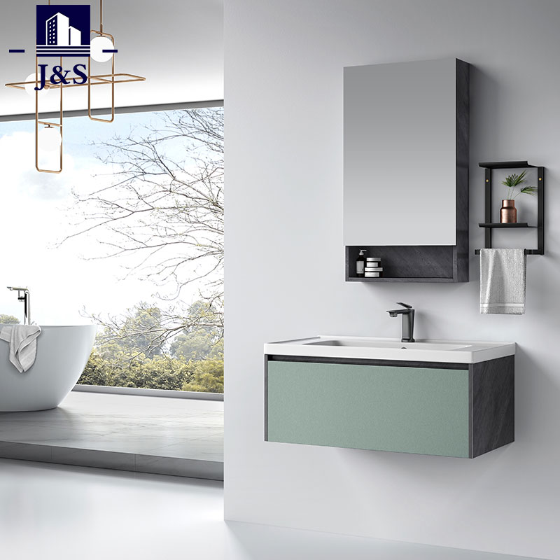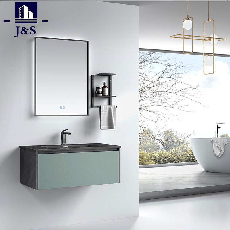 Ønsker du å kjøpe et sett med matcha grønne baderomsskap? Slanke baderomsmøbelskap er et sett med enkle baderomsskap, dørpaneler med grønn maling, integrert servant, baderomsskap LED-speilskap, den enkleste designen for å møte brukernes behov.