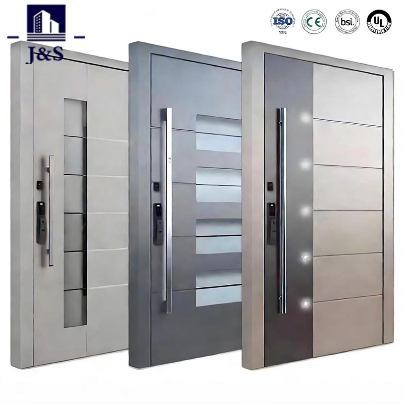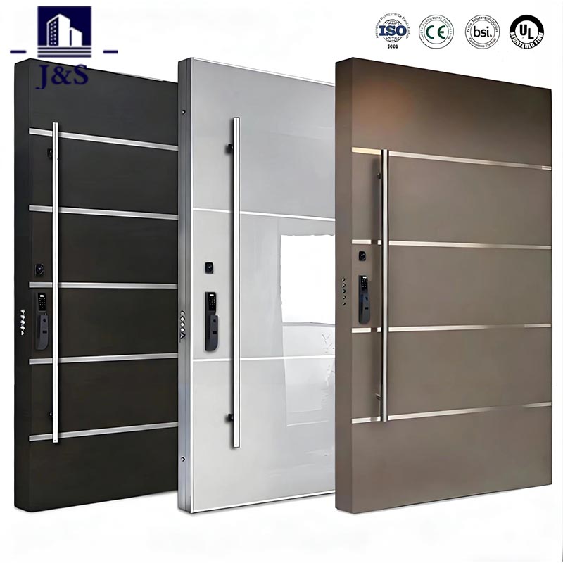 Øk inngangen din med sikkerhetsdøren i stål fra J&S, som tilbys til konkurransedyktig pris av en pålitelig Kina-produsent. Den kombinerer robust sikkerhet med moderne minimalistisk estetikk, og har elegante horisontale metalllister og en slitesterk ramme i rustfritt stål. Konstruert for tyveribeskyttelse og værbestandighet, er denne sikkerhetsdøren i stål perfekt for både bolig- og kommersielle innganger. Den sofistikerte matte finishen komplementerer moderne eksteriør, mens den glatte overflaten som er lett å rengjøre sikrer langvarig glans. Den oppfyller de høyeste sikkerhetsstandardene og er tilgjengelig i tilpassede størrelser for å passe perfekt til døråpningen din, noe som gjør den til et ideelt valg for kjøpere som søker en pålitelig leverandør eller fabrikkkilde.